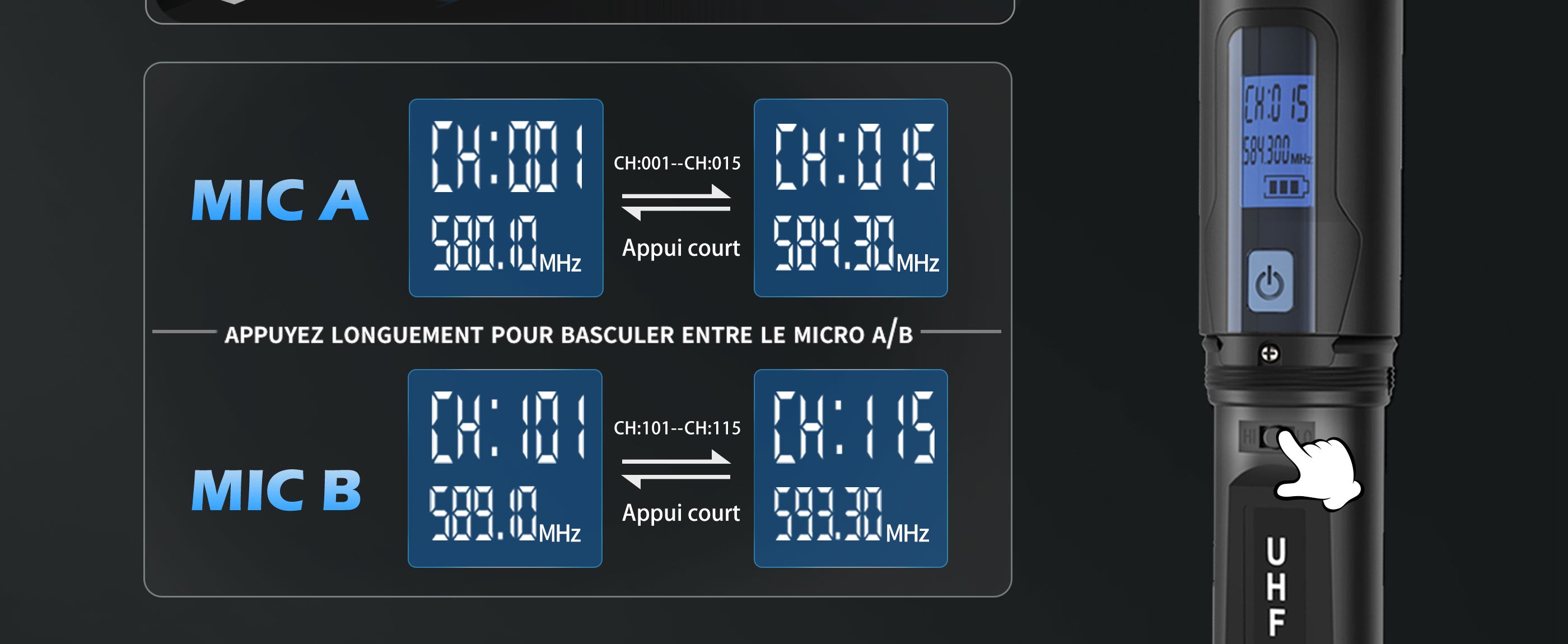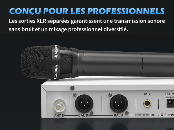 Talomen K120 | Système de microphone sans fil UHF professionnel