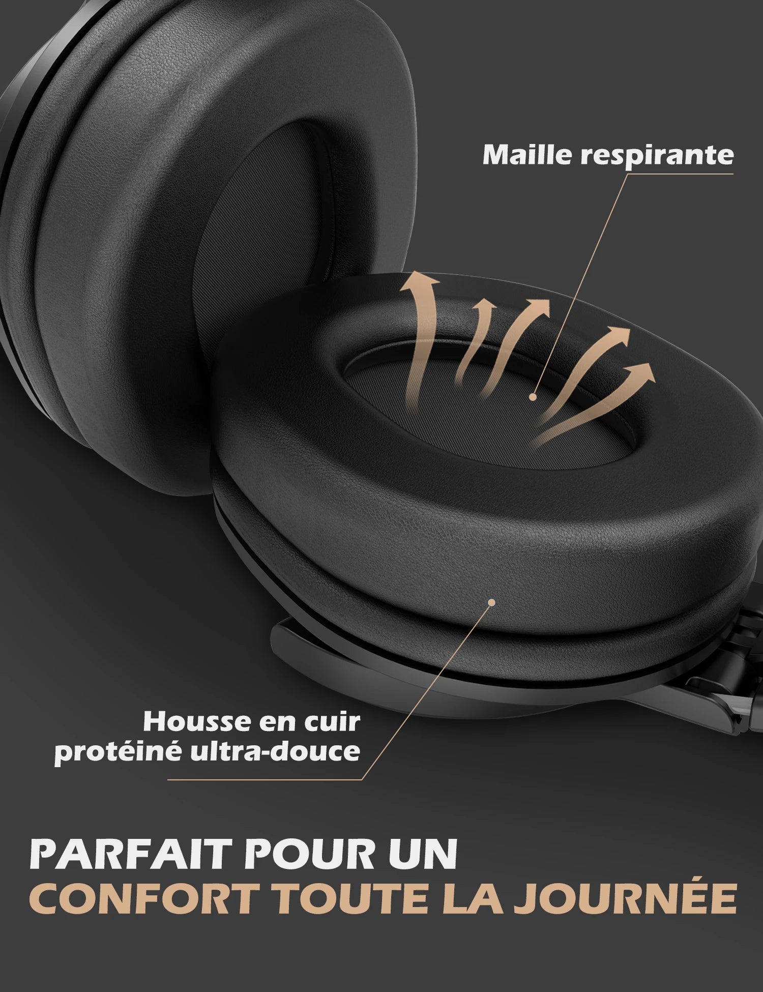 Le revêtement en cuir protéiné ultra-doux et la maille respirante épousent parfaitement la forme des oreilles et les enveloppent délicatement, pour un confort optimal même après une utilisation prolongée. Ce maintien parfait minimise la pression et les fuites sonores, tout en réduisant efficacement les bruits ambiants.