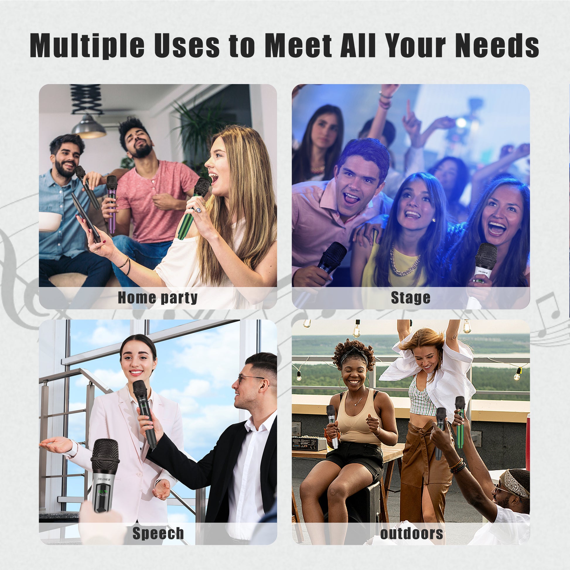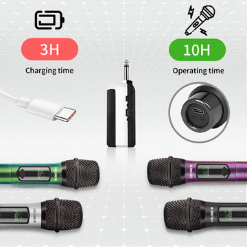 Adopting an innovative chip makes the microphone's signal have 160ft operating range (line of sight) to freely move around during performances.Lower latency, tamper-proof, and a more stable signal without worrying that the sound will be cut off during use. Suitable forindoor and outdoor events such as family karaoke, church, weddings, conferences, speeches and small stage performances.