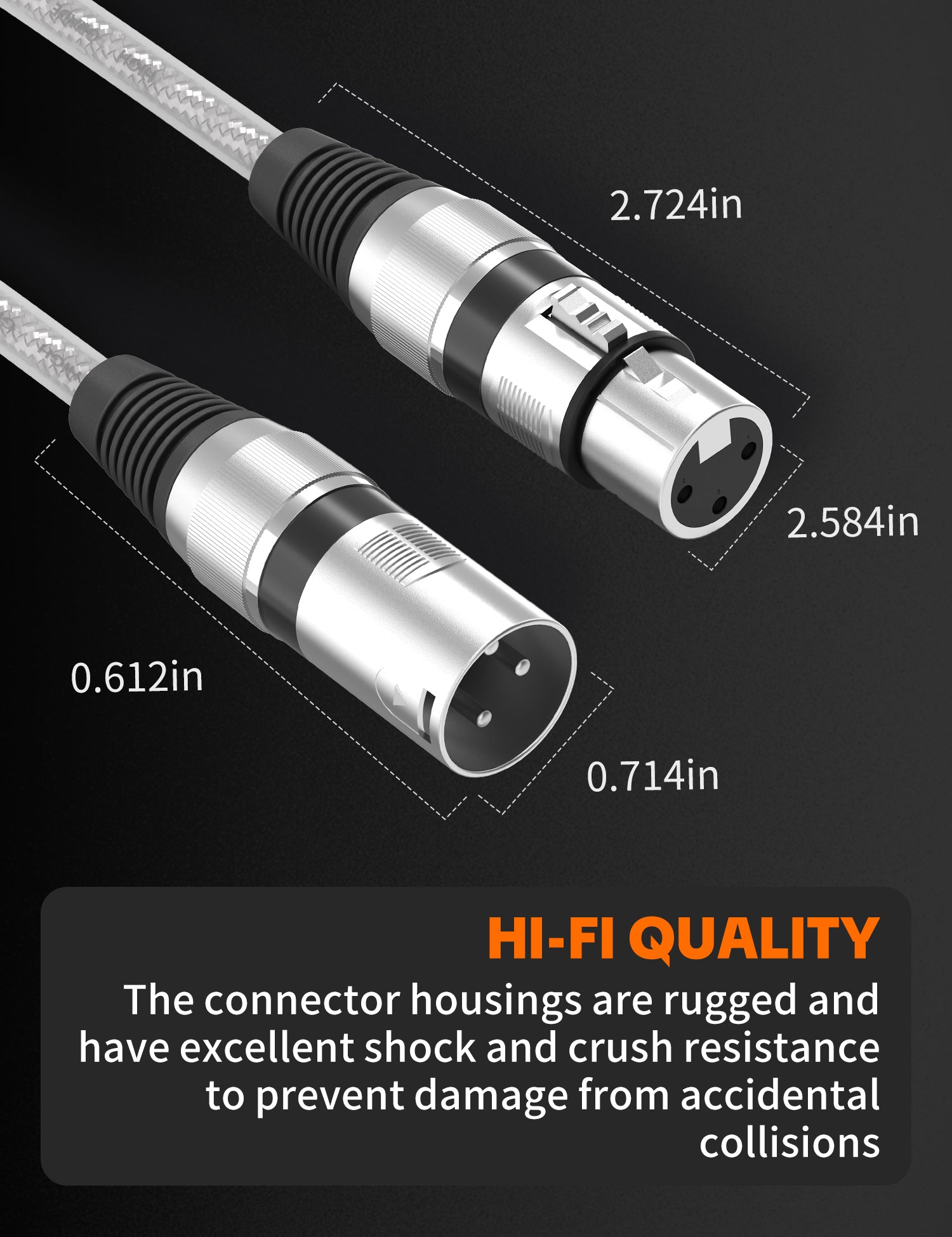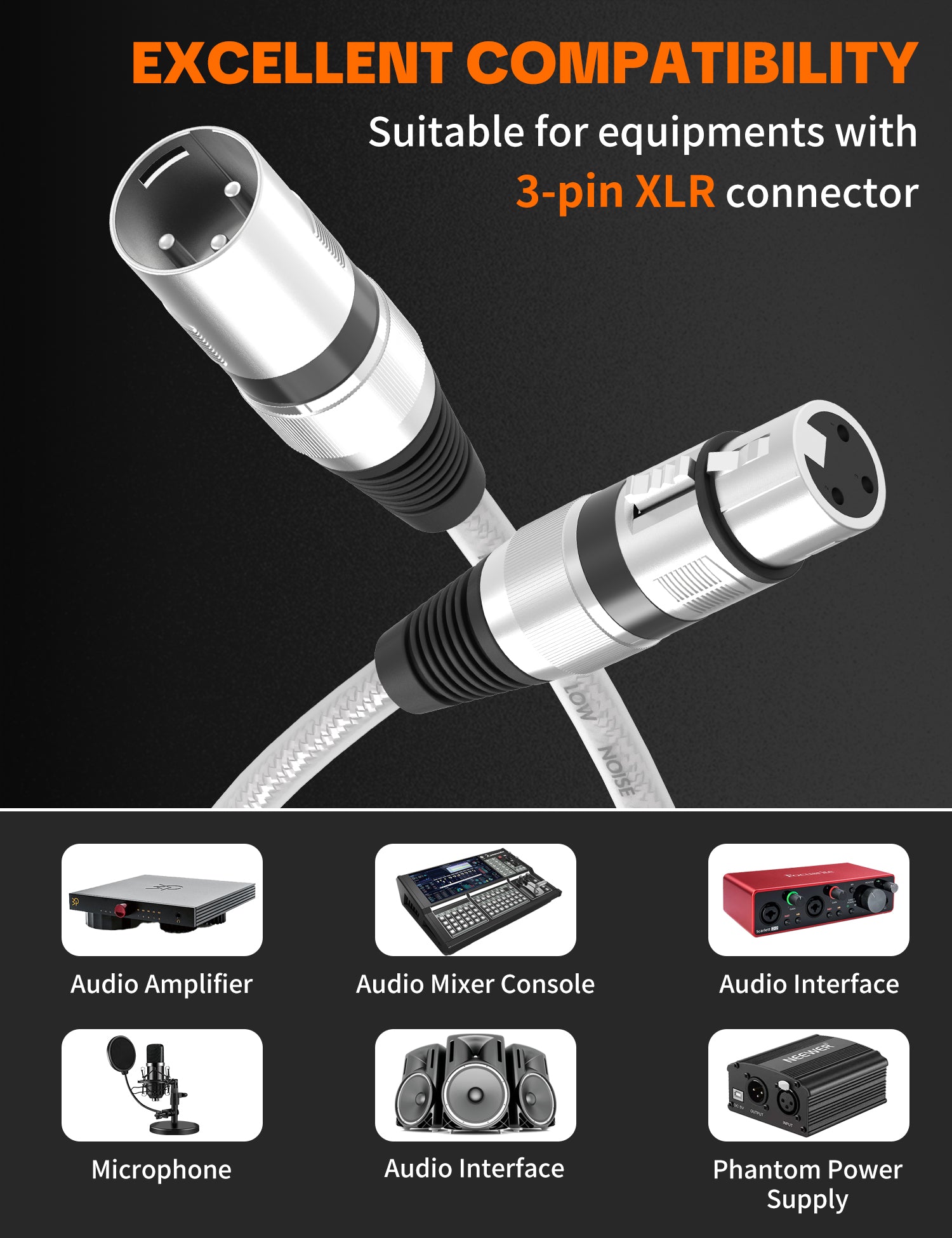 Male to Female Balanced Mic Cord with Oxygen-Free Copper 3-Pin XLR Connectors for Audio Mixer Studio Monitor PA System Microphone Podcast Recording