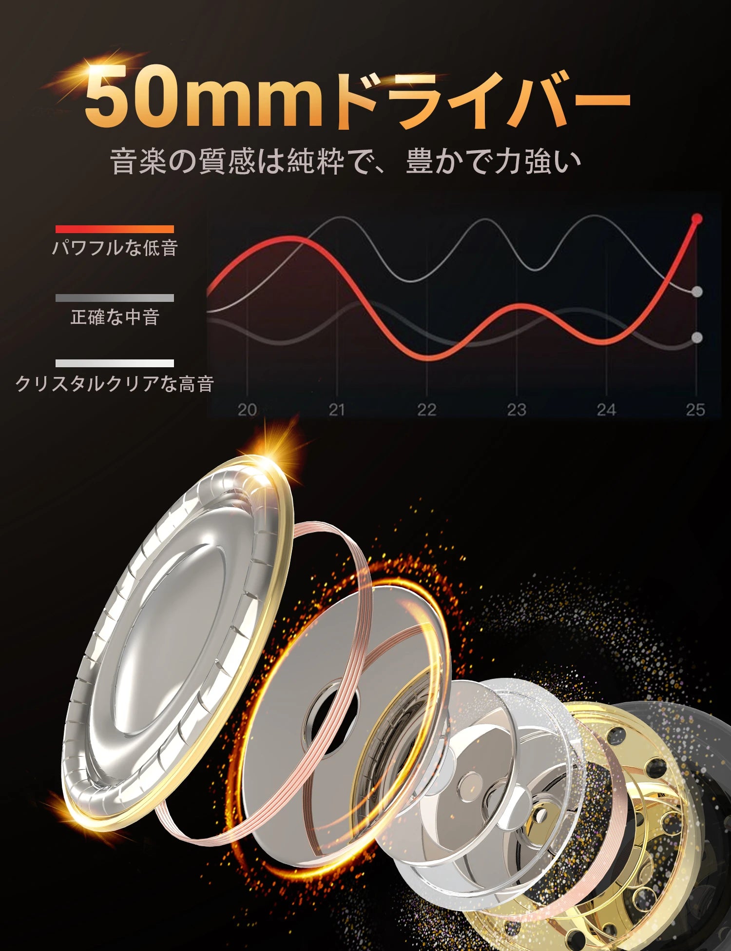 Ti660x は、一般的な 30 ~ 40 mm のドライバー ユニットよりも大きい 50 mm ドライバーを使用して、より広いサウンド ステージ、より強力な低周波インパクト、よりクリアなディテールを実現し、音楽鑑賞とプロフェッショナル モニタリングの両方で優れた性能を発揮します。