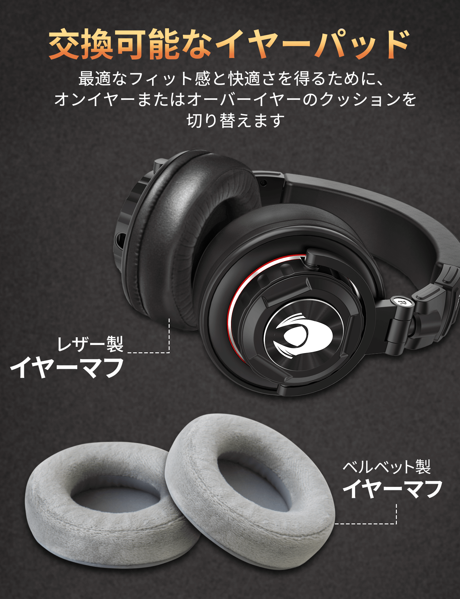レザーとベルベットのイヤーマフ:レザーのイヤーマフは繊細な触り心地で、ぴったりとフィットし、しっかりと包み込むような感触で、優れた遮音性を発揮します。交換可能なベルベットのイヤーマフは、柔らかく通気性に優れ、雲のように軽く、きめ細やかで肌に優しいベルベットの表面と心地よい風通しを実現しています。