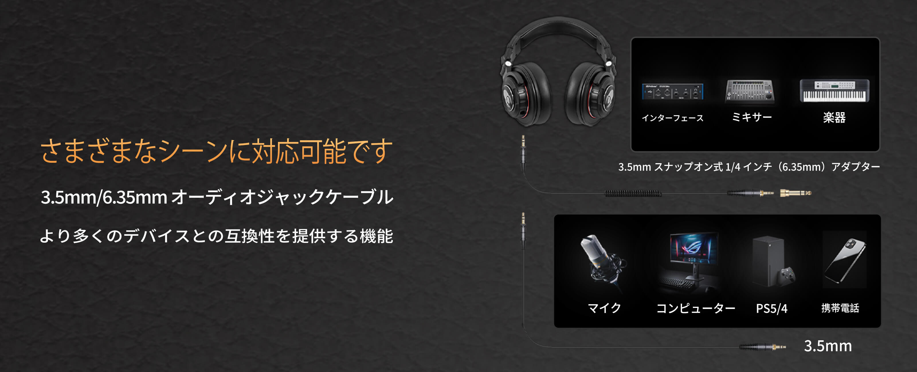 駆動しやすいヘッドホンなら、追加費用をかけずに誰でも手軽にプロ級のサウンドを楽しめます。プラグアンドプレイでいつでもどこでも。